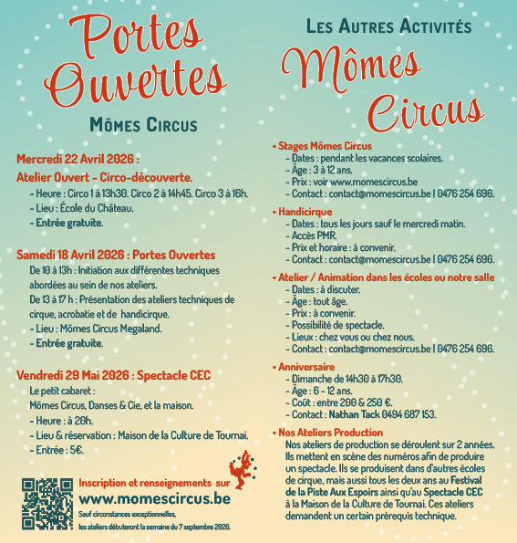 • Salle "Mômes Circus Megaland", avenue de Maire 23, 7500 Tournai.